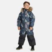 Bērnu ūdens un vēja necaurlaidīgs kombinezons. Gaisu caurlaidīgs virsējais audums. Kombinezonam mīksta odere. Piedurknēs un staru malās iestrādāta gumijas apdare. Noņemamā kapuce pie apkakles stiprināma ar velkro aizdari. Ūdens necaurlaidīgi līmēti izšuvumi. Komplektā elastīgas pazolītes. Auduma virspusē atstarojošas detaļas.