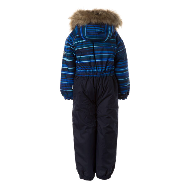 Bērnu ūdens un vēja necaurlaidīgs kombinezons Gaisu caurlaidīgs virsējais audums Kombinezonam mīksta odere Piedurknēs un staru malās iestrādāta gumijas apdare Noņemamā kapuce pie apkakles stiprināma ar velkro aizdari Priekšpusē apšūtas kabatas Ūdens necaurlaidīgi līmēti izšuvumi Komplektā elastīgas pazolītes Kapucei noņemama mākslīgās kažokādas mala Auduma virspusē atstarojošas detaļas