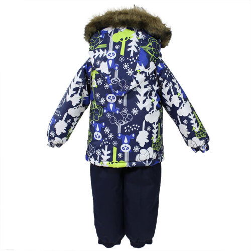 Klasisks divdaļīgs komplekts ar vatelīna pildījumu mazuļiem. Mīksta kokvilnas flaneļa odere, gaisa caurlaidīgs un ūdeni atgrūdošs virsējais audums. Bikses ar paaugstinātu vidukļa daļu un nolīmētu sēžas šuvi. Noņemama kapuce ar kažokādas apmali, regulējamas gumijas lences un ir divas kabatas.
