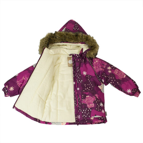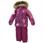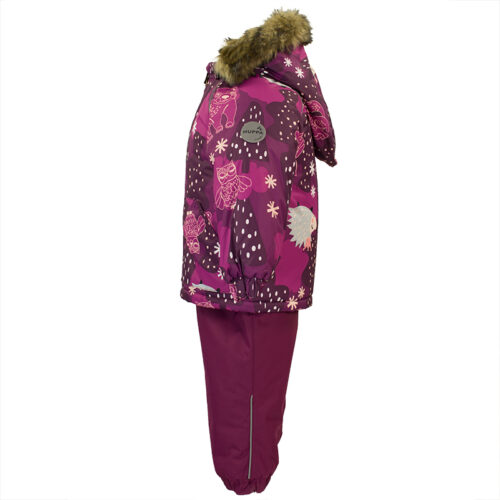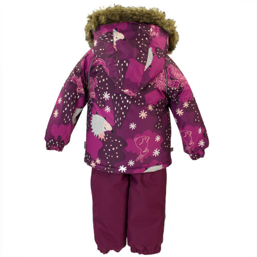 Klasisks divdaļīgs komplekts ar vatelīna pildījumu mazuļiem. Mīksta kokvilnas flaneļa odere, gaisa caurlaidīgs un ūdeni atgrūdošs virsējais audums. Bikses ar paaugstinātu vidukļa daļu un nolīmētu sēžas šuvi. Noņemama kapuce ar kažokādas apmali, regulējamas gumijas lences un ir divas kabatas.