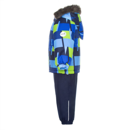 Klasisks divdaļīgs komplekts ar biezāku vatelīna pildījumu mazuļiem. Mīksta kokvilnas flaneļa odere, gaisa caurlaidīgs un ūdeni atgrūdošs virsējais audums. Bikses ar paaugstinātu vidukļa daļu un nolīmētu sēžas šuvi. Noņemama kapuce ar kažokādas apmali, regulējamas gumijas lences un ir divas kabatas.