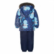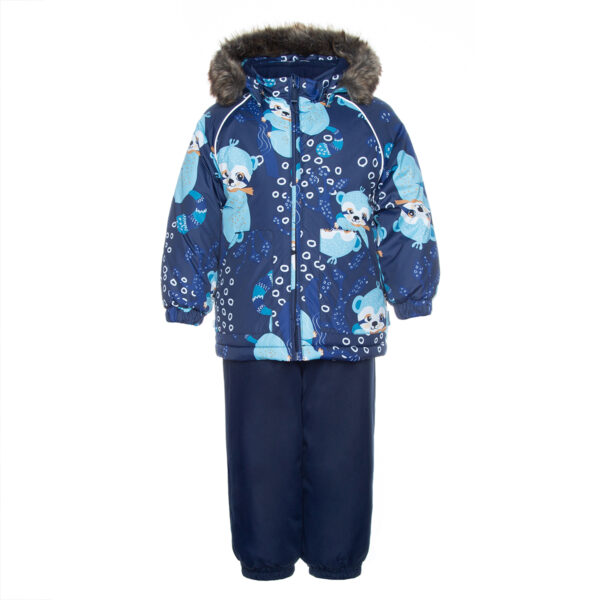 Klasisks divdaļīgs komplekts ar vatelīna pildījumu mazuļiem. Mīksta kokvilnas flaneļa odere, gaisa caurlaidīgs un ūdeni atgrūdošs virsējais audums. Bikses ar paaugstinātu vidukļa daļu un nolīmētu sēžas šuvi. Noņemama kapuce ar kažokādas apmali, regulējamas gumijas lences un ir divas kabatas.