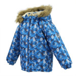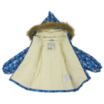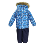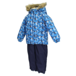 Klasisks divdaļīgs komplekts ar vatelīna pildījumu mazuļiem. Mīksta kokvilnas flaneļa odere, gaisa caurlaidīgs un ūdeni atgrūdošs virsējais audums. Bikses ar paaugstinātu vidukļa daļu un nolīmētu sēžas šuvi. Noņemama kapuce ar kažokādas apmali, regulējamas gumijas lences un ir divas kabatas.