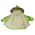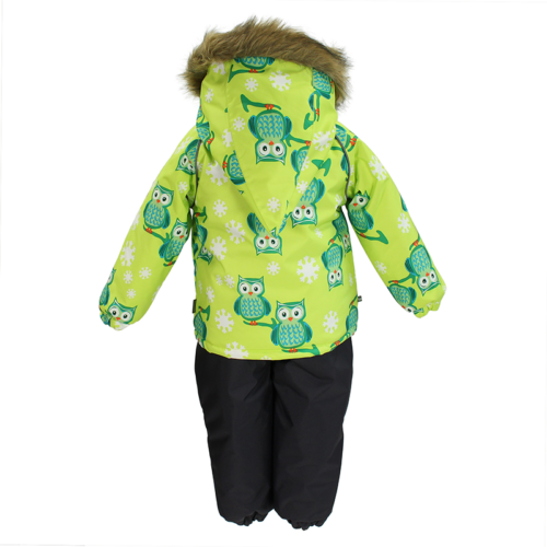 Klasisks divdaļīgs komplekts ar vatelīna pildījumu mazuļiem. Mīksta kokvilnas flaneļa odere, gaisa caurlaidīgs un ūdeni atgrūdošs virsējais audums. Bikses ar paaugstinātu vidukļa daļu un nolīmētu sēžas šuvi. Noņemama kapuce ar kažokādas apmali, regulējamas gumijas lences un ir divas kabatas.