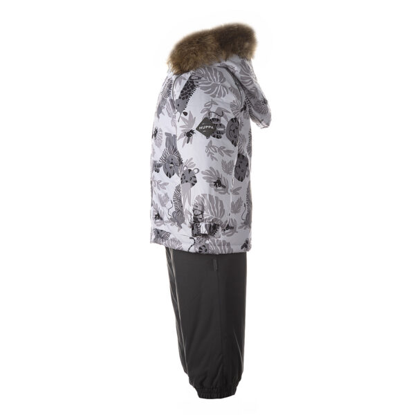 Children´s winter set. The set has a nice soft cotton flannel lining and breathable and waterproof outer fabric that is well suited to our climate. The jacket has 300g and the pants have 160g of insulation. The high-waisted pants have a taped seat seam, which allows the toddler to enjoy winter joys without worry and stay dry and warm at the same time. For more comfortable wearing, the set has a removable fur hood, adjustable elastic suspenders and two great pockets for storing finds. Reflective details in the cutouts allow for safe play even in the dark.