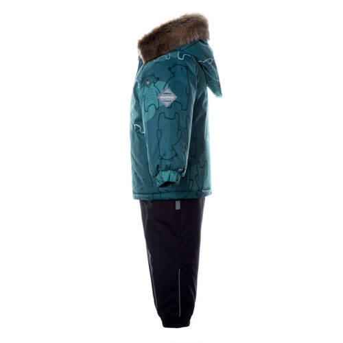 Children´s winter set. The set has a nice soft cotton flannel lining and breathable and waterproof outer fabric that is well suited to our climate. The jacket has 300g and the pants have 160g of insulation. The high-waisted pants have a taped seat seam, which allows the toddler to enjoy winter joys without worry and stay dry and warm at the same time. For more comfortable wearing, the set has a removable fur hood, adjustable elastic suspenders and two great pockets for storing finds. Reflective details in the cutouts allow for safe play even in the dark.