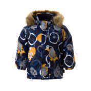 Bērnu ūdens un vēja necaurlaidīga jaka Gaisu caurlaidīgs virsējais audums Jakas odere no mīksta auduma Noņemamā kapuce pie apkakles stiprināma ar velkro Piedurknēm regulējama gumijas apdare Priekšpusē apšūts rāvējslēdzējs Priekšpusē apšūtas kabatas Kapucei mākslīgās kažokādas mala Auduma virspusē atstarojošas detaļas