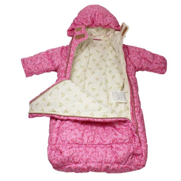 Babies sleeping bag with 160g of insulation. The sleeping bag is lined with soft cotton flannel and has breathable top fabric. Sleeve ends can be conveniently rolled down in sizes 62–80.
