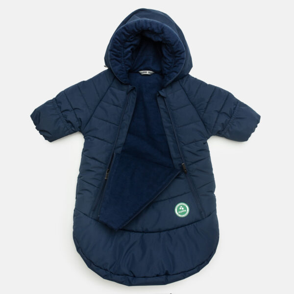 Mazuļu sildošs, ūdens un vēja necaurlaidīgs guļammaiss-kombinezons. Gaisu caurlaidīgs virsējais audums. Guļammaisa odere no flaneļa. Piedurknēs un kapuces malā iestrādāta gumijas apdare. Ērti atlokāmas piedurknes. Radot dizainu ir padomāts arī par bērna drošību auto, jo drošības jostas atveres atrodas mugurpusē – tas nodrošina to, lai bērns netiktu nedrošā veidā piestiprināts ar drošības jostām. Drošības jostu siksnas nedrīkst likt pāri virsdrēbēm, jo tad bērns nebūs kārtīgi piestiprināts. Brauciens ar auto ir ne tikai drošs, bet arī ērts, jo bērnam nebūs karsti – guļammaisu-kombinezonu var ērti atvērt, drošības jostas piesprādēt virs pirmās drēbju kārtas un, ja nepieciešams doties ārā atkārtoti, tad var ātri uzvilkt kombinezonu.