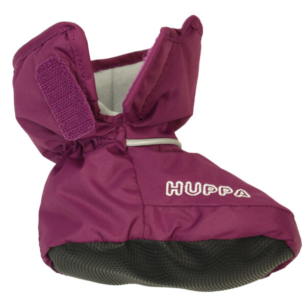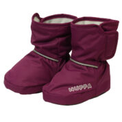 Babies’ soft waterproof and windproof lined booties. Breathable fabric. Cotton jersey inside. Reflective elements on fabric.