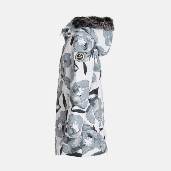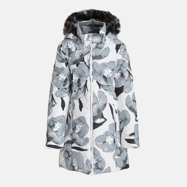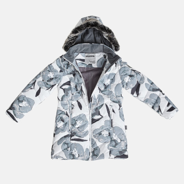 Bērnu ūdens un vēja necaurlaidīgas apdares ziemas mētelis. Gaisu caurlaidīgs virsējais audums. Mīksta mēteļa odere. Noņemamā kapuce pie apkakles stiprināma ar velkro aizdari. Mēteļa pildījumā inovatīvs, pārstrādāts materiāls, kas imitē dūnu spalvu pildījumu. Materiāls ir silts, ātri žūstošs un mazgājot nesaveļas. Lieliska alternatīva dabīgajam dūnu pildījumam. Kapucei noņemama mākslīgās kažokādas mala. Priekšpusi daiļo divas aizdarāmas kabatas, kur var ielikt cimdus vai citu nepieciešamo. Auduma virspusē atstarojošas detaļas.