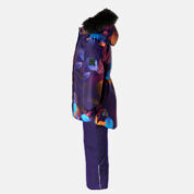 Bērnu jakas un bikšu komplekts. Ūdens un vēja necaurlaidīgs, gaisu caurlaidīgs virsējais audums. Jakas un bikšu odere no mīksta auduma. Piedurknēs un muguras daļā iestrādāta gumijas apdare. Noņemamā kapuce pie apkakles stiprinās ar velkro aizdari. Kapucei noņemama mākslīgās kažokādas mala. Biksēm ir noņemamas un regulējamas elastīgās lences. Jostas daļā iestrādāta gumijas apdare. Sniega necaurlaidīgas staras. Staras aizdarāmas ar stoperi. Ūdens necaurlaidīgi līmēti izšuvumi. Kā jakai, tā arī biksēm ir atstarojošas detaļas.