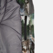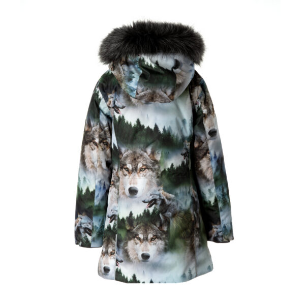 Ūdensdroša un vēja necaurlaidīga ziemas parka bērniem ar siltinājumu 300 g. Elpojošs materiāls. Parkas iekšpusē mīksta odere. Piedurkņu galos tuneļveida manšetes. Priekšējā aizdarē divvirzienu rāvējslēdzējs ar nosedzošu detaļu un spiedpogām. Jostasvietā gumija ar fiksatoriem. Ūdensdroši nolīmētas šuves. Noņemamā kapuce piestiprināma pie apkakles ar spiedpogām. Kapucei noņemama mākslīgās kažokādas apmale. Uz virsējā materiāla atstarojošas detaļas.
