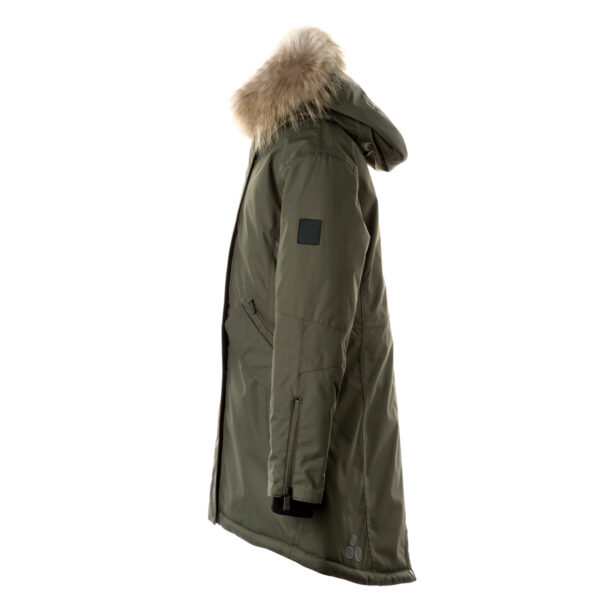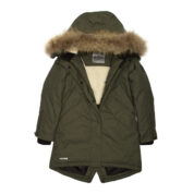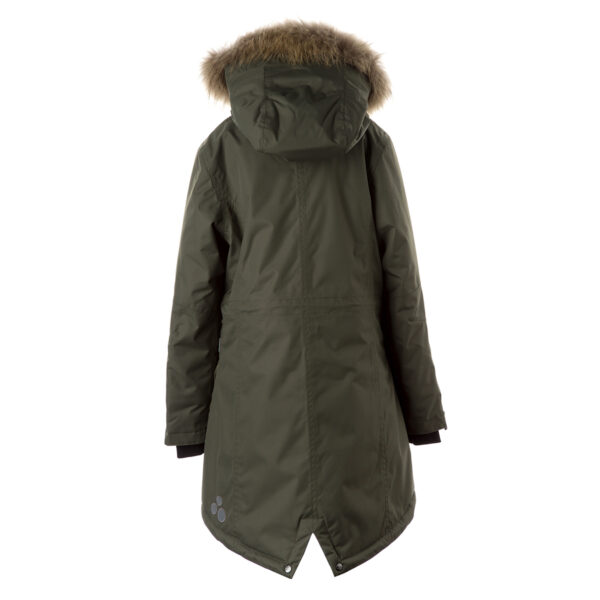 Bērnu ūdens un vēja necaurlaidīga ziemas jaka. Gaisu caurlaidīgs virsējais audums. Jakas odere no mīksta auduma. Muguras augšdaļā un kapuces iekšējos sānos jērādas imitācijas odere. Regulējama kapuce. Rievotas piedurknes. Priekšpusē apšūts divvirziena rāvējslēdzējs. Magnētiski aizdarāmas kabatas. Jostas vietā aizdare ar stoperi, jostasvieta regulējama no iekšpuses. Ūdens necaurlaidīgi līmēti izšuvumi. Kapucei noņemama dabīgās kažokādas mala. Auduma virspusē atstarojošas detaļas.