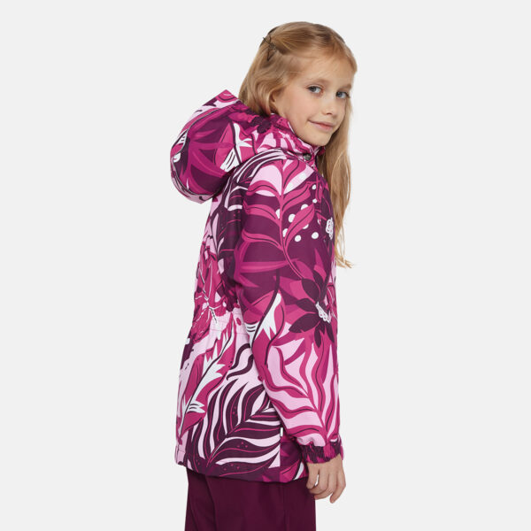 Bērnu starpsezonas jakas un bikšu komplekts. Ūdens- un vēja izturīgs, elpojošs virsaudums. Jakas un bikšu iekšpusē ir mīksts oderaudums. Piedurkņu galos, kapuces malā un mugurpusē iestrādāta gumijas lente. Noņemamā kapuce pie apkakles nostiprināma ar spiedpogām. Biksēm ir augstāka jostasvieta un regulējamas, elastīgas lences. Jostasvietā iestrādāta gumijas lente. Staru galos gumijas auklas tunelis ar iestrādātām atdurēm. Ūdensnoturīga, stepēta sēžas šuve. Biksēm nav staras iekšējās šuves. Gan jakai, gan biksēm ir atstarojošas detaļas.