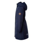 Water- and windproof spring-autumn coat for girls. Breathable outer fabric. The inside of the coat is made of soft lining fabric. Rubber band incorporated on the edge of the hood and on the back at the waistline. Zipper fastener. Incorporated front pockets. The coat has waterproof taped shoulder seams. Reflective details on the outer fabric.