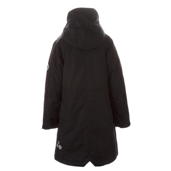 Parka meitenēm ar 140 g siltinājumu. Ūdensdroši nolīmētas nošuves. Viduklī iestrādāta savelkama gumija. Priekšpusi rotā kabatas. Iekškabata ar rāvējslēdzēju. No augšpuses un apakšpuses attaisāma aizdare, lai būtu ērtāka sēdēšana.