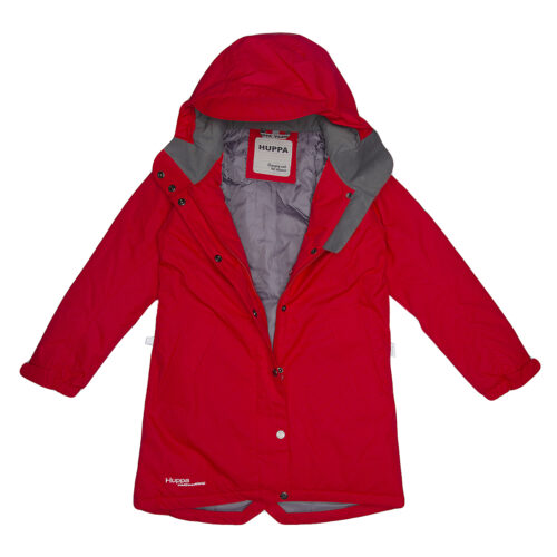 Children´s waterproof and windproof semi-season parka. Breathable outer fabric. The inside of the parka is made of soft lining fabric. Rubber band incorporated at the edge of the hood. Adjustable sleeve ends. Rubber band tunnel with stoppers on the waistline. The parka has a waterproof taped armhole and neck, hood, and shoulder seams. Reflective details on the outer fabric.
