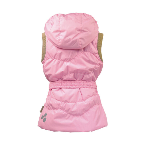 Girls´ vest. Lining: taffeta lining + velvet, cotton and polyester blend, thin wadding (120 g insulation). Beautiful embroidery on the vest. Removable hood with snaps.