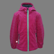 Meiteņu vēja necaurlaidīga Softshell jaka. Jakai ir punktots atstarojošs raksts un iekšējā odere no matēta mīksta materiāla. Tam ir arī elastīga kapuce.