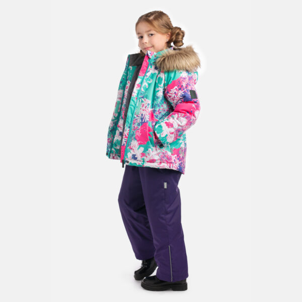 Bērnu ūdens un vēja necaurlaidīga jaka. Gaisu caurlaidīgs virsējais audums. Mīksts jakas oderes audums. Noņemamā kapuce pie apkakles stiprinās ar velkro aizdari. Piedurknes un muguras daļa apstrādātas ar gumijas apmalīti. Priekšpusē rāvējslēdzēja aizdare. Priekšpusē kabatas. Kapucei mākslīgās kažokādas apdare. Virsējā audumā iestrādātas atstarojošas detaļas.
