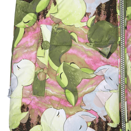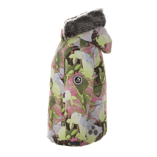 Väikeste tüdrukute 300g soojustusega jope on ideaalne kelgumäele ja lumememme tegemiseks! Jope vooder on pehme flanell ning pealiskangas on tuule- ja veekindel. Soonikust sisemised mansetid jope varrukates hoiavad lapse sooja ja kuivana ka aktiivses mänguhoos. Et laps oleks ka pimedal ajal nähtav, on jopele lisatud helkurdetailid ning rinnaesist kaunistab helkurmotiiv. Eemaldatav kapuuts on õues mängimiseks turvaline – see on kinnijäämise vältimiseks kinnitatud trukkidega ning selle karvane äär on samuti eemaldatav. Ruttu õue!