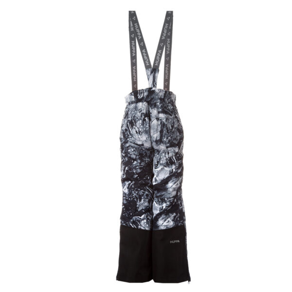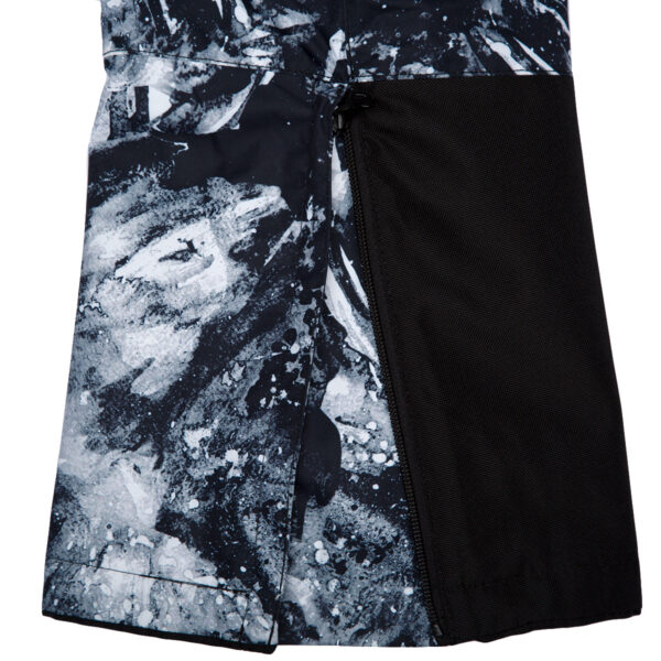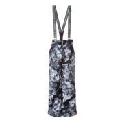 Children’s waterproof and windproof pants. Breathable fabric. Soft mesh lining on the inside of the pants. Adjustable removable braces. Adjustable waist. Integrated elastic band at the back of the waist. Integrated zippered pockets. Snow gaiters at leg ends. Zipper-adjustable leg end width. Waterproof taped seams. Reflective elements at the bottom.
