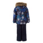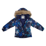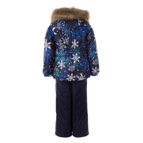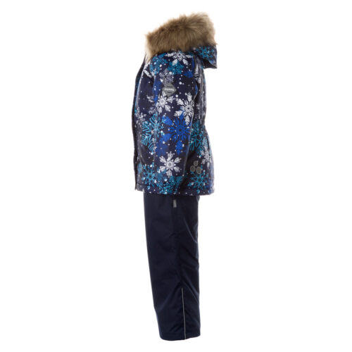 Children’s jacket and pants set. Waterproof and windproof, breathable top fabric. Soft mesh lining on the inside of the jacket and pants. Integrated elastic band at sleeve ends and on the waist. Removable snap-on hood Faux fur trim on hood. The bib pants have elastic adjustable braces. Integrated elastic band on waist. Drawstring tunnel with stoppers at leg ends. Waterproof taped seams. The pants have no inner leg seam. Reflective elements on both jacket and pants.