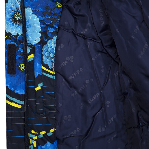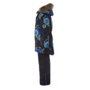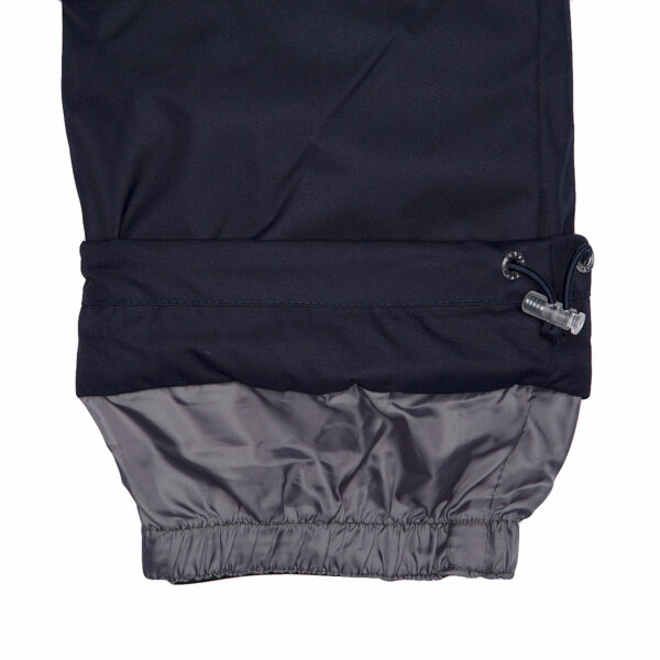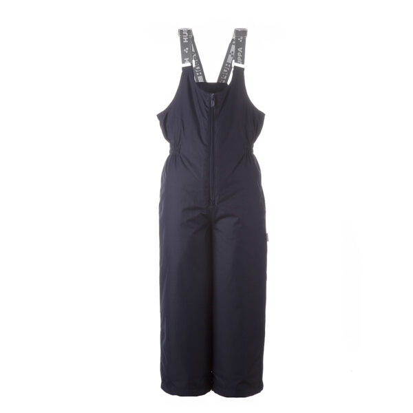 Children’s jacket and pants set. Waterproof and windproof, breathable top fabric. Soft mesh lining on the inside of the jacket and pants. Integrated elastic band at sleeve ends and on the waist. Removable snap-on hood. Removable faux fur trim on hood. The pants have removable elastic and adjustable braces. Integrated elastic band on waist. Snow gaiters at leg ends. Drawstring tunnel with stoppers at leg ends. Waterproof taped seams. Reflective elements on both jacket and pants.