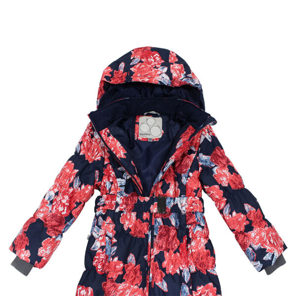 Children’s waterproof and windproof winter coat Breathable fabric Soft lining on the inside Removable snap-on hood Ribbed cuffs at sleeve ends Two-way zipper at front Faux fur trim on hood Reflective elements on fabric