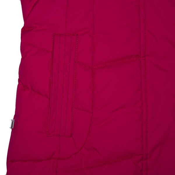 Stylish waterproof and windproof girls´ down coat. Breathable fabric. Soft lining on the inside. Down feathers and feathers for filling. Removable snap-on hood. Ribbed cuffs at sleeve ends. Two-way zipper covered with stud-press flap at front. Removable natural fur trim on hood. Reflective elements on the top fabric to add visibility in the dark.