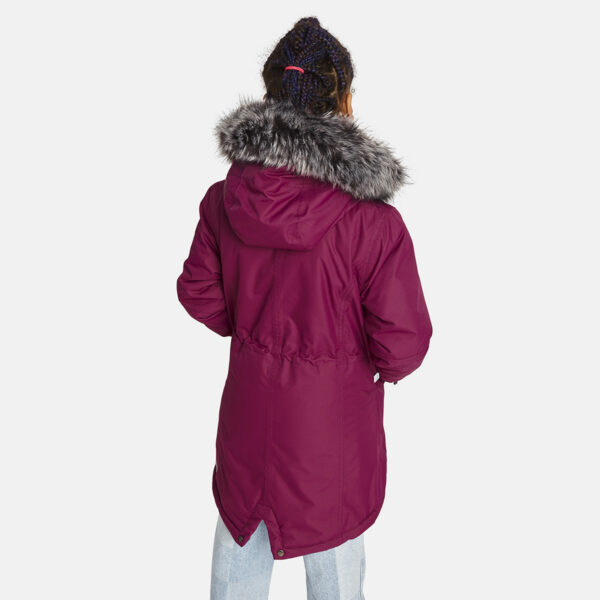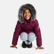 Bērnu ūdens un vēja necaurlaidīga ziemas jaka. Gaisu caurlaidīgs virsējais audums. Jakas odere no mīksta auduma. Muguras augšdaļā un kapuces iekšējos sānos jērādas imitācijas odere. Regulējama kapuce. Rievotas piedurknes. Priekšpusē apšūts divvirziena rāvējslēdzējs. Magnētiski aizdarāmas kabatas. Jostas vietā aizdare ar stoperi. Ūdens necaurlaidīgi līmēti izšuvumi. Kapucei noņemama mākslīgās kažokādas mala. Auduma virspusē atstarojošas detaļas.