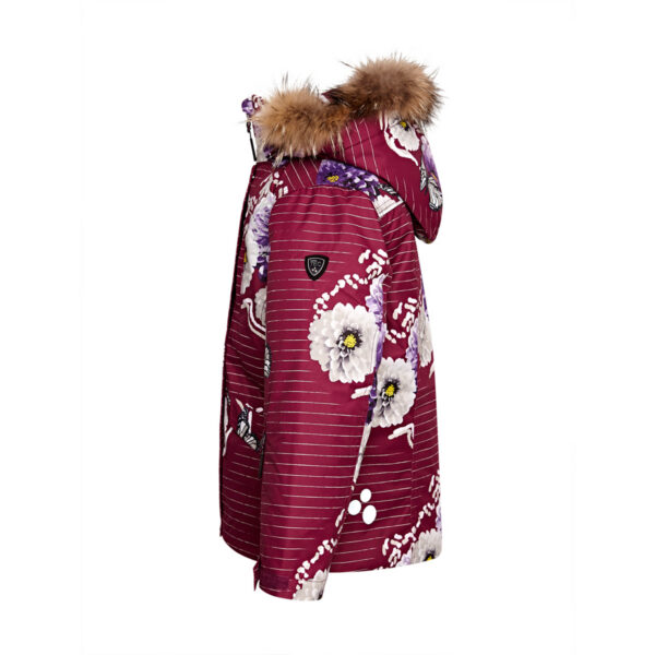 Girls´ winter jacket. The wind and water resistant outer fabric of the jacket has the best technical characteristics and the insulation is 200g. The ribbed inner cuffs in the jacket sleeves and the snow guard keep you warm and dry even when doing sports. The jacket is lined with heat-reflecting HUPPATEC fabric.
