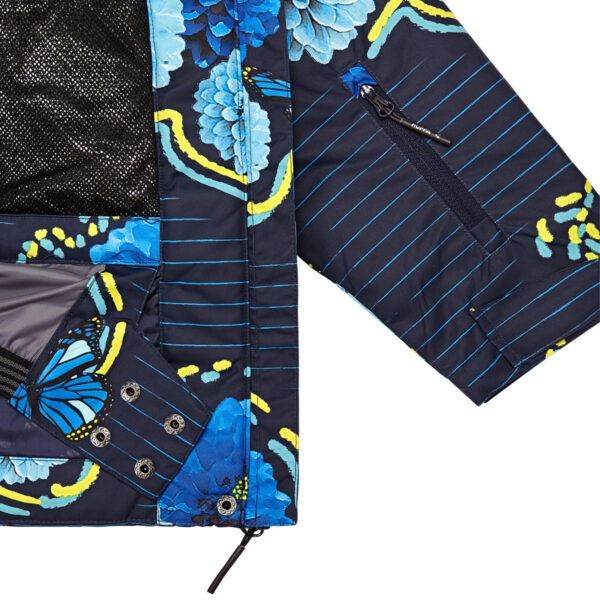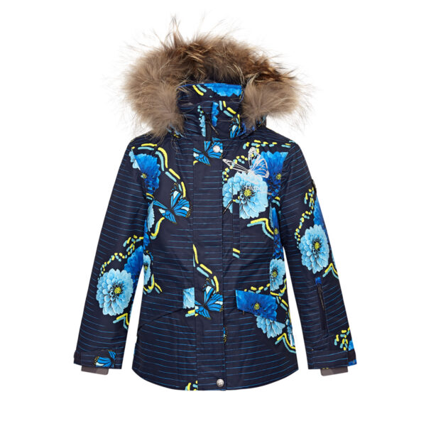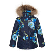 Girls´ winter jacket. The wind and water resistant outer fabric of the jacket has the best technical characteristics and the insulation is 200g. The ribbed inner cuffs in the jacket sleeves and the snow guard keep you warm and dry even when doing sports. The jacket is lined with heat-reflecting HUPPATEC fabric.