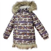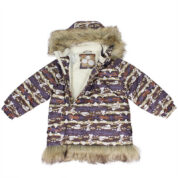 Winter jacket for toddlers with 300g insulation. The jacket has a soft coral fleece lining and a removable fur hood.