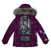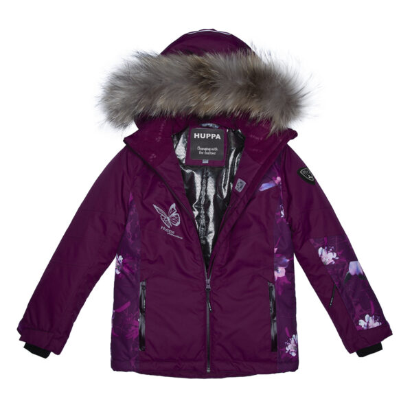 Girls´ winter jacket! The wind and water resistant outer fabric of the jacket has the best technical characteristics and the insulation is 300g. The ribbed inner cuffs in the jacket sleeves and the snow guard keep you warm and dry even when doing sports. The jacket is lined with heat-reflecting HUPPATEC fabric.