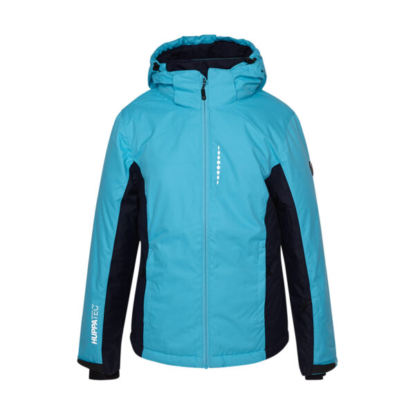 Bērnu ūdens un vēja necaurlaidīga jaka Gaisu caurlaidīgs virsējais audums Mīksta jakas odere, sniega necaurlaidīga virskārta Kapuces malā un aizmugurē iestrādāta regulējama gumijas apdare Ūdensnecaurlaidīga priekšpuse Priekšpusē un uz kreisās piedurknēs aizdarāmas kabatas Regulējamas piedurknes Piedurknēs manšete ar vietiņu īkšķim Ūdensnecaurlaidīgi līmēti izšuvumi Auduma virspusē atstarojošas detaļas