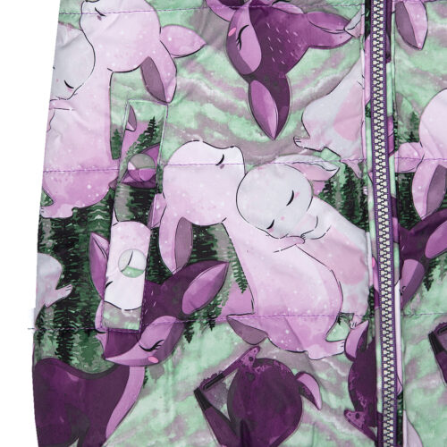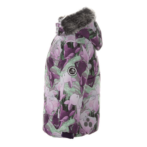 Little girls´ winter jacket with insulation of 300g. The jacket´s lining is soft flannel and the outer fabric is wind and water resistant. The inner ribbed cuffs on the jacket´s sleeves keep your child warm and dry even during active play. To make sure your child is visible in the dark, the jacket has reflective details and the front of the chest is decorated with a reflective motif. The removable hood is safe for playing outside – it is fastened with snaps to prevent getting caught, and its fur edge is also removable.