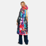 Sieviešu ūdens un vēja necaurlaidīgs dūnu mētelis. Gaisu caurlaidīgs virsējais audums. Mīksta mēteļa odere. Pildījumā dūnu spalvas un spalvas. Noņemamā kapuce pie apkakles stiprināma ar velkro aizdari. Rievotas piedurknes. Divvirziena rāvējslēdzējs, apakšpusē stiprinājums. Priekšpusē aizdarāmas kabatas. Auduma virspusē atstarojošas detaļas.