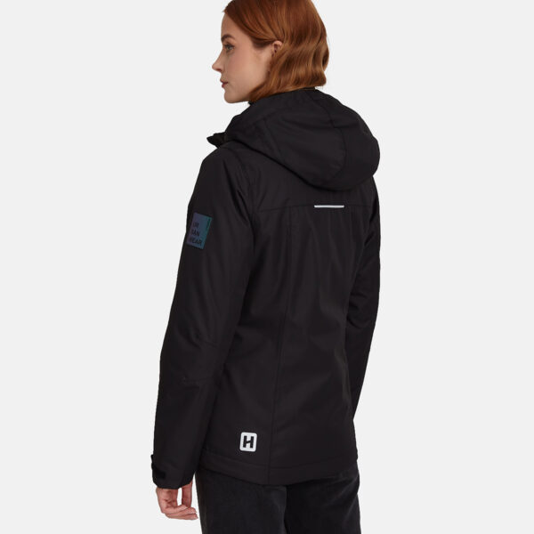 Sieviešu pavasara-rudens virsjaka no ūdens un vēja necaurlaidīga auduma ar 40 g siltinājumu. Noņemama, regulējama kapuce, kas piestiprināma pie apkakles ar rāvējslēdzēju. Apakšmalā iestrādāta gumija ar fiksatoriem. Regulējama kapuce un piedurkņu gali. Kabata zem priekšējās aizdares. Uz virsējā materiāla atstarojošas detaļas.