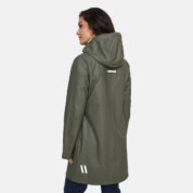 Sieviešu vēja necaurlaidīgs lietus mētelis Kapuce aizdarāma ar aukliņu Mēteli sausu palīdz uzturēt līmētie izšūvumi Auduma virspusē atstarojošas detaļas
