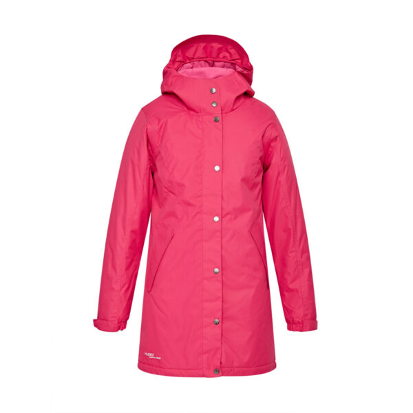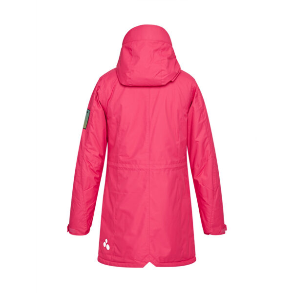 Women’s waterproof and windproof between-seasons parka. Breathable fabric. Soft lining on the inside. Adjustable hood and sleeve ends. Drawstring tunnel with stoppers on waist. Waterproof taped seams. Reflective elements on fabric.