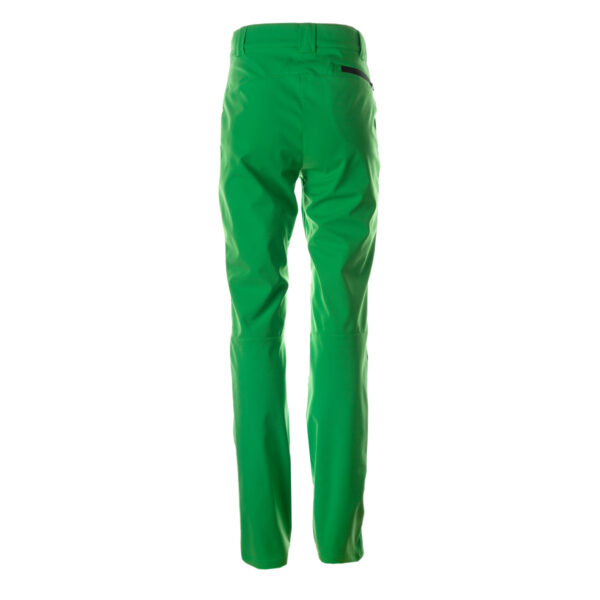 Sieviešu vēja necaurlaidīgas bikses no softshell auduma. Mīksta bikšu odere. Regulējams jostasvietas platums – krāsaina gumijas josla ar pogcaurumiem. Aizdarāmas kabatas. Staru apakšdaļā atstarojošs logo.