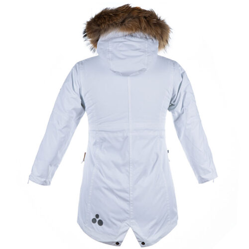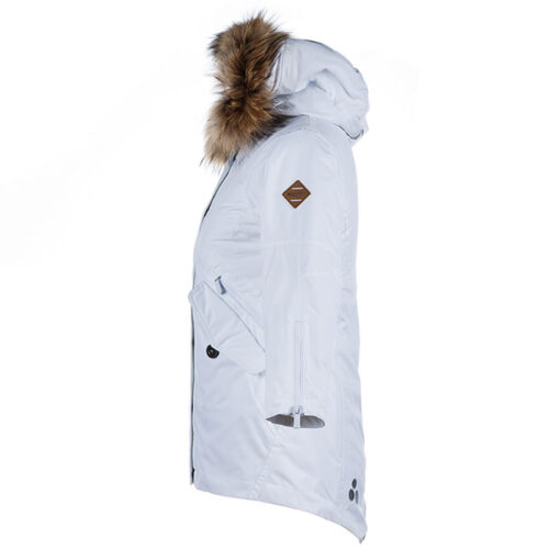Sieviešu ūdens un vēja necaurlaidīga ziemas jaka. Gaisu caurlaidīgs virsējais audums. Jakas odere no mīksta auduma. Muguras augšdaļā un kapuces iekšējos sānos jērādas imitācijas odere. Regulējama kapuce. Rievotas piedurknes. Priekšpusē apšūts divvirziena rāvējslēdzējs. Magnētiski aizdarāmas kabatas. Jostas vietā aizdare ar stoperi, jostasvieta regulējama no iekšpuses. Ūdens necaurlaidīgi līmēti izšuvumi. Kapucei noņemama dabīgās kažokādas mala. Auduma virspusē atstarojošas detaļas.