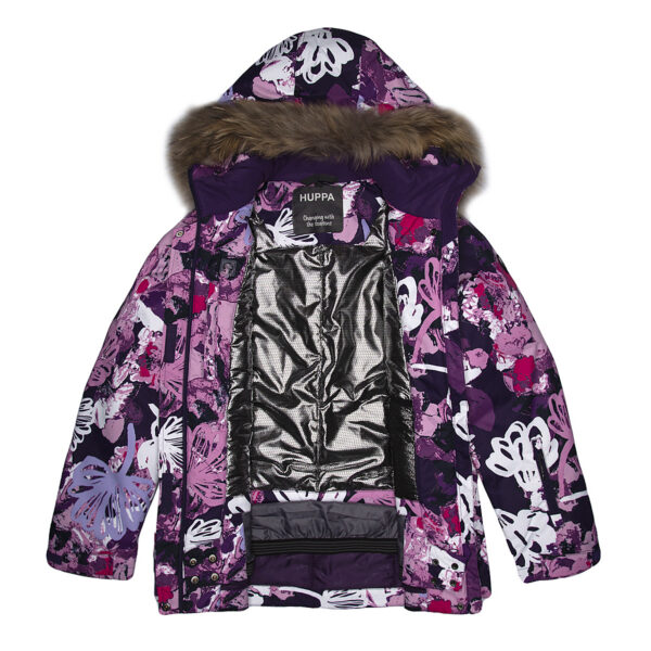 Women´s winter jacket. The wind and water resistant outer fabric of the jacket has the best technical characteristics and the insulation is 200g. The ribbed inner cuffs in the jacket sleeves and the snow guard keep you warm and dry even when doing sports. The jacket is lined with heat-reflecting HUPPATEC fabric.