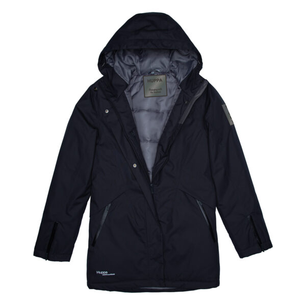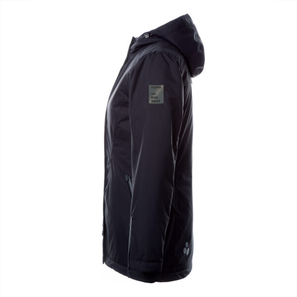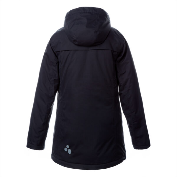 Women’s water- and windproof winter jacket with 200 g insulation. Breathable outer fabric. Soft lining fabric inside the jacket. Front zipper pockets. Adjustable hood and sleeve cuffs. Waterproof taped seams. Reflective detailing on outer fabric.