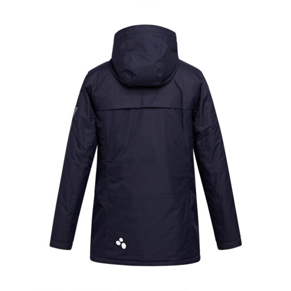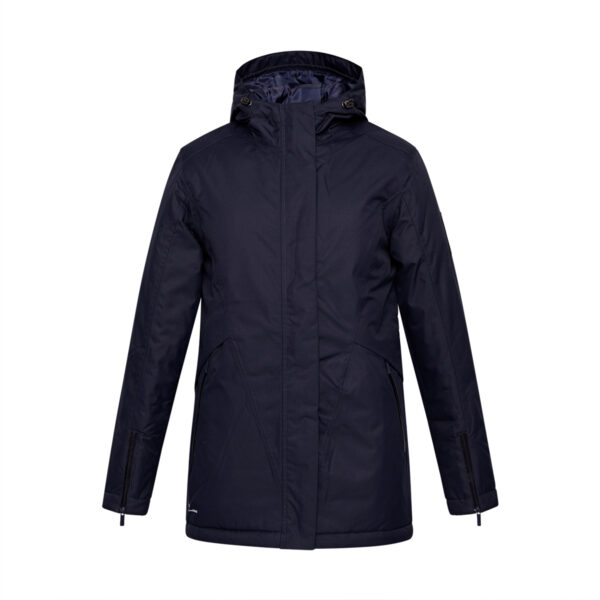 Women’s water- and windproof winter jacket with 200 g insulation. Breathable outer fabric. Soft lining fabric inside the jacket. Front zipper pockets. Adjustable hood and sleeve cuffs. Waterproof taped seams. Reflective detailing on outer fabric.
