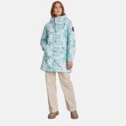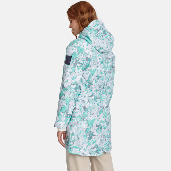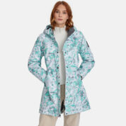 Sieviešu ūdens un vēja necaurlaidīga jaka. Gaisu caurlaidīgs virsējais audums. Mīksta jakas odere. Noņemamā kapuce pie apkakles stiprināma ar velkro aizdari. Piedurknēs un kapucē iestrādāta gumijas apdare. Priekšpusē apšūta rāvējslēdzēja aizdare. Priekšpusē kabatas. Auduma virspusē atstarojošas detaļas.