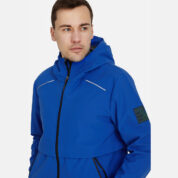 Vīriešu vēja necaurlaidīga Softshell parka. Parkas iekšējā odere ir izgatavota no mīksta matēta materiāla. Tai ir regulējams viduklis un kapuce, un tā ir dekorēta ar atstarojošām detaļām.