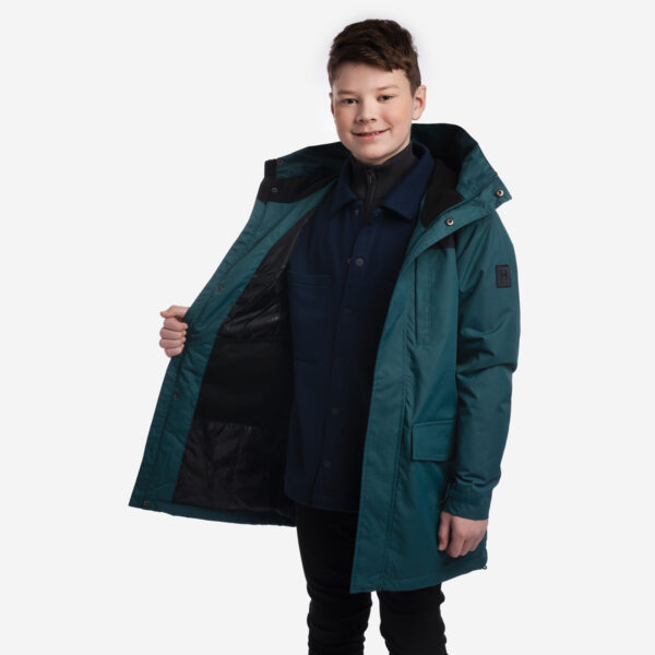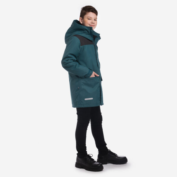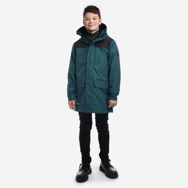 Siltināta (40 g) ūdens un vēja necaurlaidīga jaka bērniem, piemērota pavasarim un rudenim. Ārējais audums ir elpojošs, un jakas odere ir mīksta. Regulējama kapuce un piedurkņu aproces. Plecu daļā ir Condura pastiprinājums. Ārējais audums ir dekorēts ar atstarojošām detaļām.